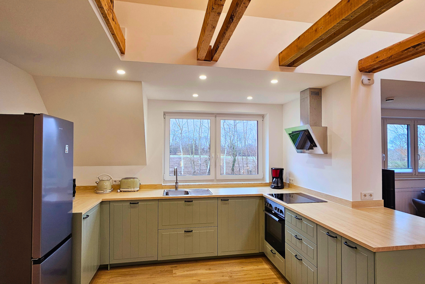 Genießen Sie die stilvolle Einrichtung und top-aktuelle Geräte für einen komfortablen Aufenthalt. Kochen oder backen Sie in gemütlicher Umgebung in der offenen Küche.