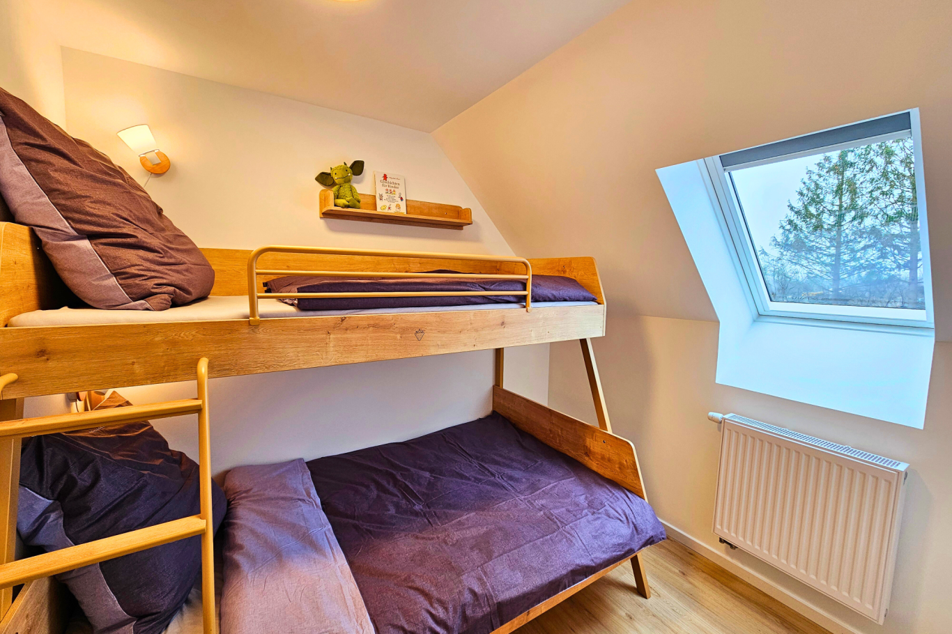 Schlafzimmer mit Etagenbett (120x200 cm & 90x200 cm).